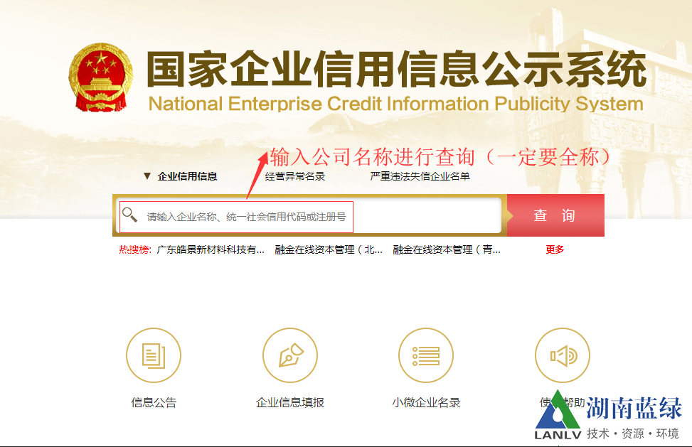 3.確定企業(yè)注冊地址和統(tǒng)一社會信用代碼 參考營業(yè)執(zhí)照上的信息,也可登錄國家企業(yè)信用信息公示系統(tǒng)http://www.gsxt.gov.cn/index.html,進行查詢(如下圖所示)。