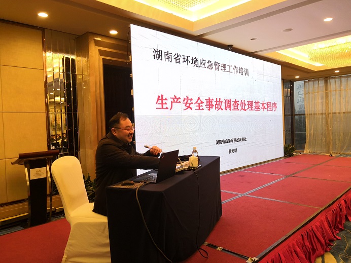 此次培訓(xùn)邀請了生態(tài)環(huán)境部華南環(huán)境科學(xué)研究院虢清偉主任、北京市環(huán)境保護(hù)投訴舉報(bào)中心杜鳳軍主任、省應(yīng)急管理廳黃方明處長和長沙市環(huán)保局龍加洪高工進(jìn)行授課。培訓(xùn)內(nèi)容包括突發(fā)環(huán)境事件應(yīng)對和處置、突發(fā)環(huán)境事件實(shí)例分析、環(huán)境舉報(bào)投訴工作制度建設(shè)規(guī)范以及生產(chǎn)安全事故調(diào)查處理基本程序等。